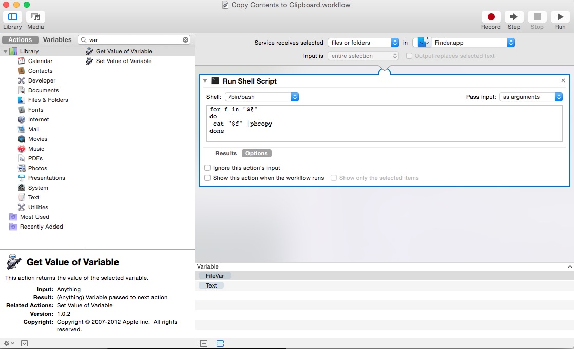 To install, download the file from here and let Automator install the workflow.